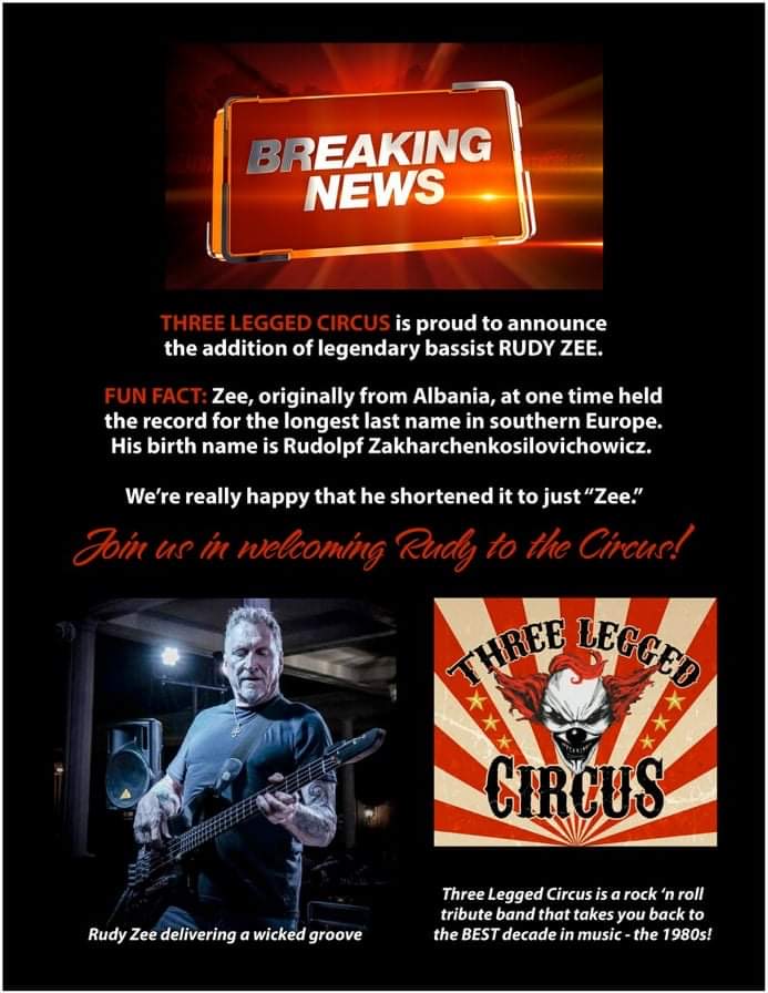 Three Legged Circus would like to wish Gary Miller and Rudy Z best wishes in their future endeavors and thank them for their contributions.